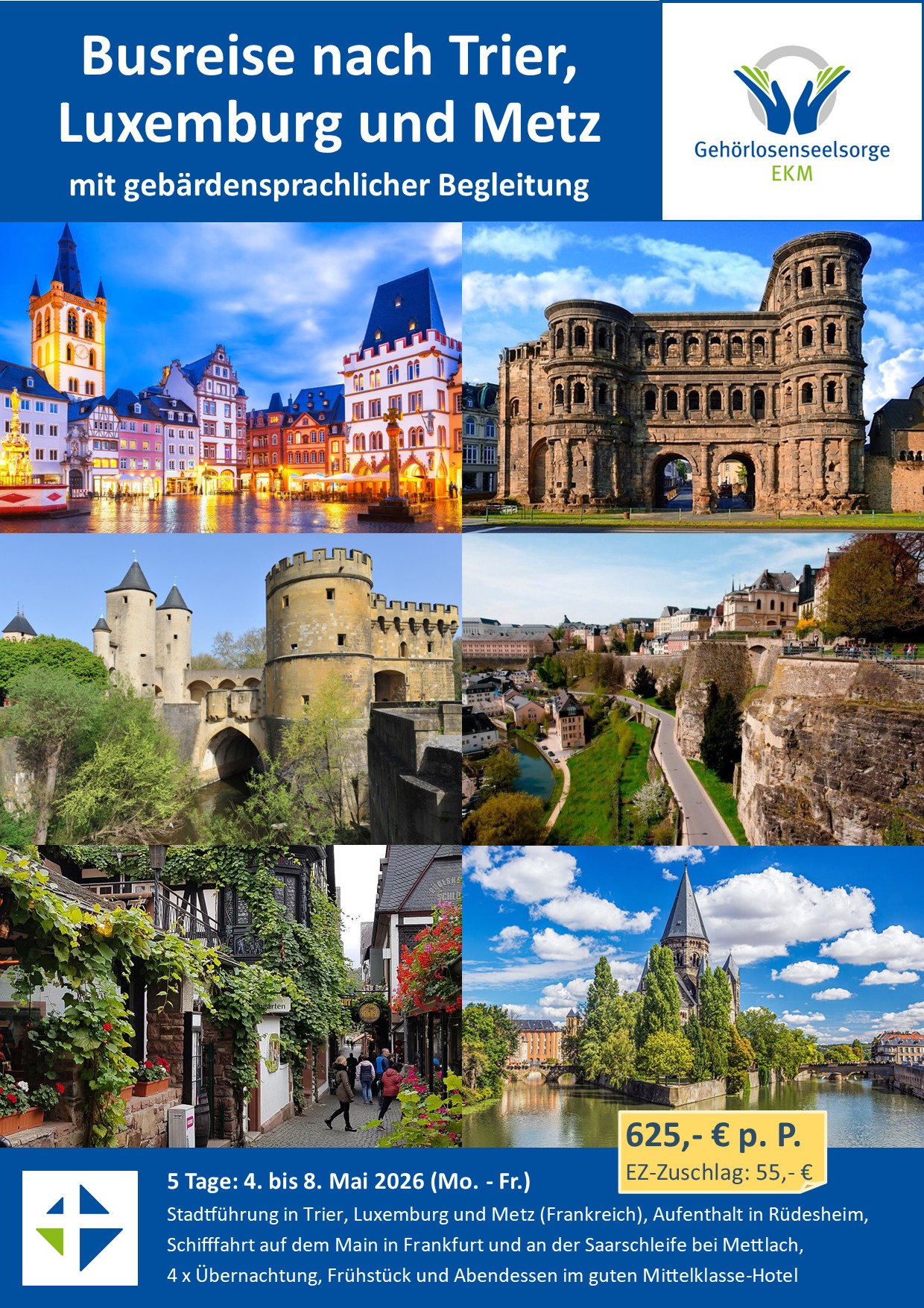 mit Ausflügen nach Frankfurt a.M., Luxemburg, Metz und Rüdesheim;